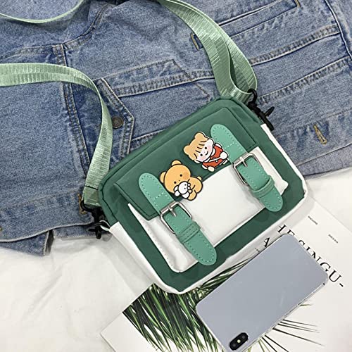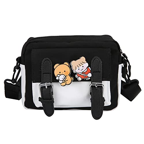 Generic Badge Borsa a Tracolla per Donna Borsa a Tracolla Casual Borsa a Tracolla Quadrata in Cartone Animato Messenger in Nylon con Tracolla Regolabile Nera
