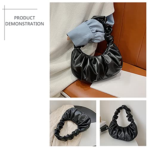 Generic Borse a Mano pieghettate estive Borsa ascellare da Donna Borsa a Tracolla Piccola da Donna Borsa Nera