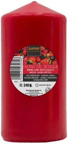 Caratteristiche tecniche: Aroma intenso Dimensioni: 12 x 6 cm circa Forma: cilindro Colore: rosso Tempo di combustione: 36 ore Fragranza: Frutti di bosco. Quantità: 12 candele da 240g