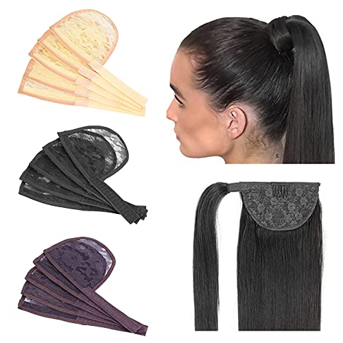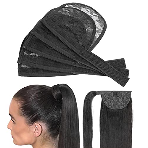 Generic Confezione da 5 Grande Base Del Merletto Rete di Capelli per Fare Coda di Cavallino Dei Capelli Panino Afro Soffio Coulisse Tappi Parrucca con magia - Nero