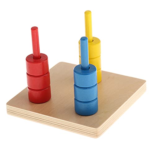 Generic Materiale di Legno Montessori Infant Toddler - 3 Dischi Colorati in Blocchi Verticali