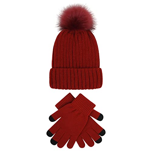 Generic Morbido Polsino Invernale Caldo Sci Lavorato a Maglia con Guanti Caldo Berretto da Donna Cappello Lavorato a Maglia Berretti da Baseball Spessi Cappelli Pelliccia