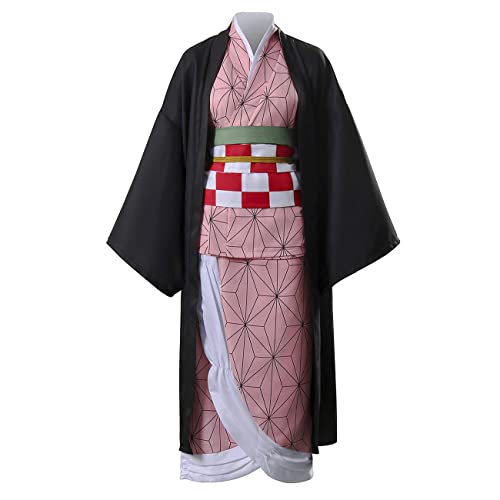 Costume da anime giapponese 10 pezzi: include 1 * cappotto in stile kimono, 1 * kimono rosa, 1 * tubo di bambù piccolo, 1 * fasciatura, 2 * cintura, 2 * copricapo, 2 * cinture per le gambe.