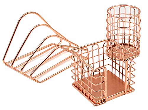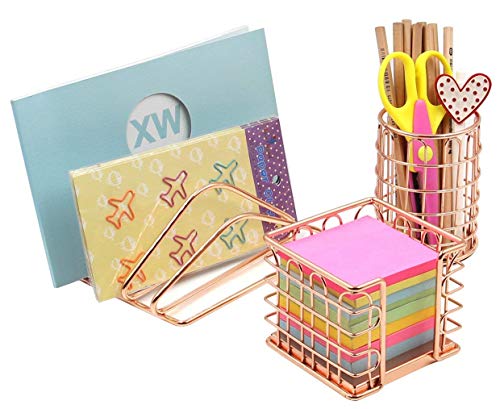 Generic - Set organizer 3 in 1 da scrivania - portapenne, portalettere e porta appunti adesivi, oro rosa
