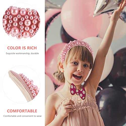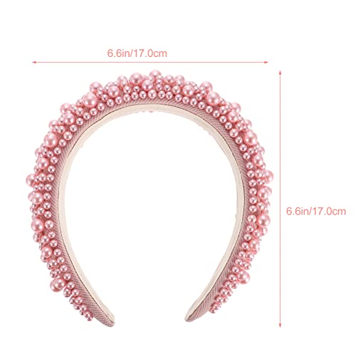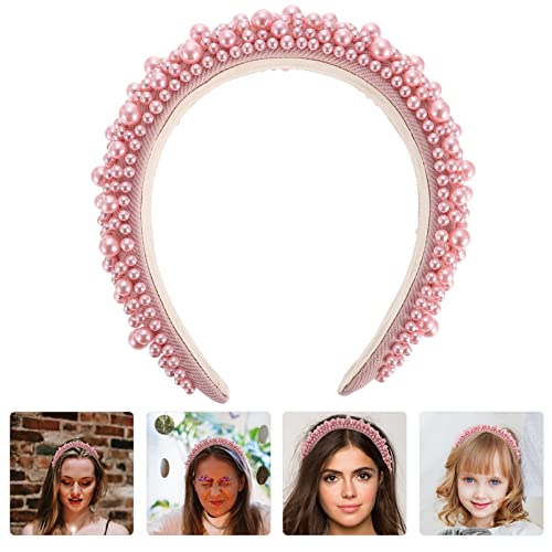 Generic Pearl Headband for Women Girls Women Pearl Hairbands Baroque Crown Wide Headband Yoga Hair Band Delicate Pearls Hair Accessories Pink