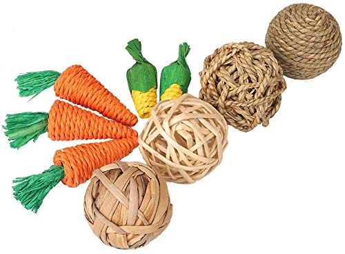 Il set di giocattoli per porcellini d'India contiene 5 palline di paglia, 4 carote tessute e 2 calli intrecciati.