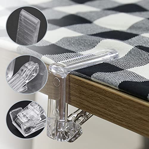 Mantenete la tovaglia piatta: le mollette trasparenti fissano la tovaglia sul tavolo, in modo che la tovaglia non si muova e i vostri oggetti possano essere posizionati in modo stabile sul tavolo. Include 12 fermatovaglia, ogni fermatovaglia misura 5,5 x 5,5 x 1,6 cm.