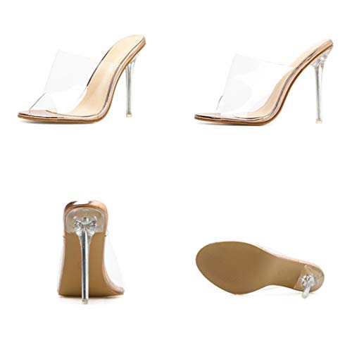 Generic Tacchi alti pompa i pattini Pantofole trasparente Peep-Toe Stiletto Sandali del partito di sera per Donne Oro 42 UE