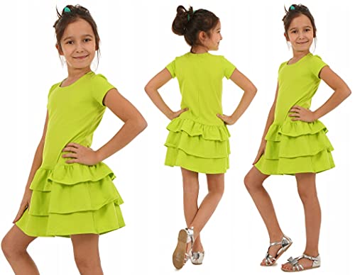 Generic Vestito da bambina con volant II, estivo, a maniche corte, in cotone, 116-158, Pistacchio, 140 cm