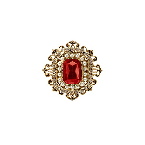 Generic Vittoriano Cristallo Rubino Fiore Spilla Pin Accessori Monili Donna Regalo - Rosso