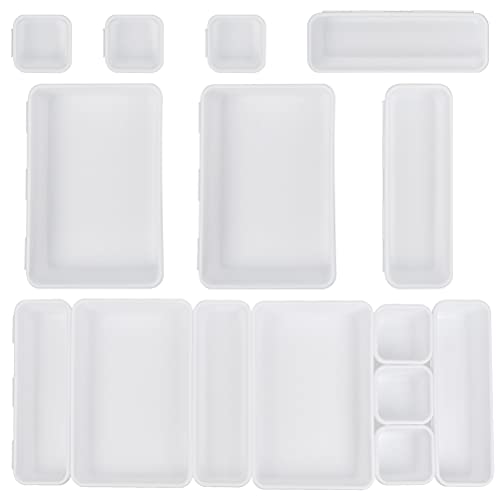 Generic Y4ZP28 8 Organizer per cassetti da scrivania, in plastica, per Cosmetici, per Bagno, Ufficio, Cucina, 3 Misure, Bianco, Acrilico