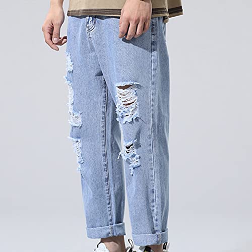 Generic11 Jeans da Salotto da Uomo Larghi lavati a Gamba Dritta per Pantaloni Corti da Strada Primavera Autunno Non sbiadiscono i Pantaloni di Jeans Strappati