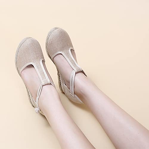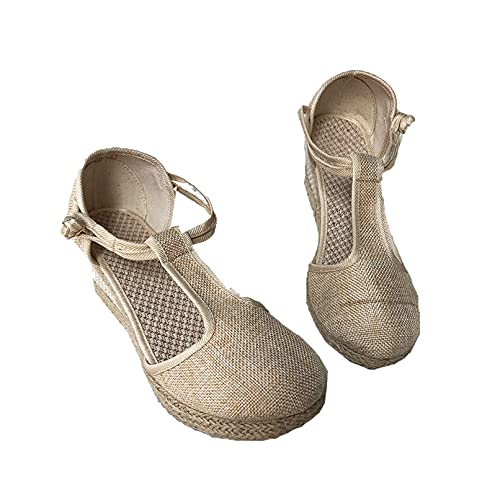 Generic7 Sandali con zeppa da donna Cinturino con fibbia a T con punta chiusa Piattaforma antiscivolo resistente all'usura Espadrillas traspiranti
