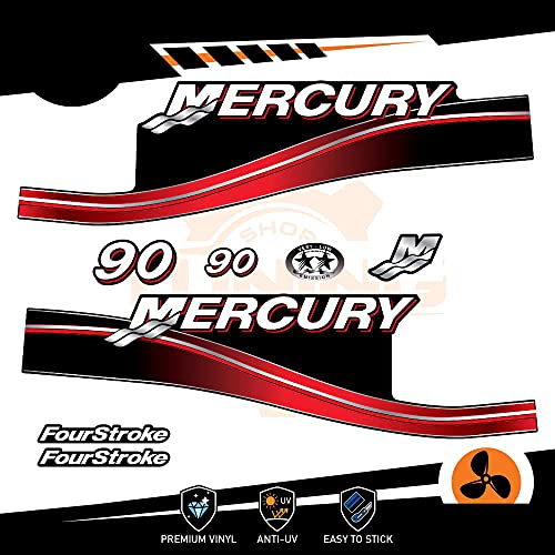 Generico Kit Adesivi Motore Marino Fuoribordo Mercury 90 CV - Four Stroke Rosso