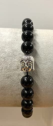 Onice nera bracciale elastico BUDDHA. Buddha è la figura di un uomo la cui vita mostra come ognuno di noi possa raggiungere lo stato di pace che vive dentro ogni essere al di là delle apparenze e della sofferenza.La dottrina buddista si basa sul concetto di impermanenza: tutto ciò che ha un inizio ha anche una fine, nulla è permanente. Otto virtù da praticare: la retta opinione, proposito, parola, azione, comportamento, aspirazione, meditazione e la retta concentrazione mentale