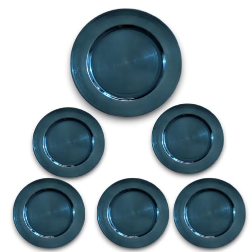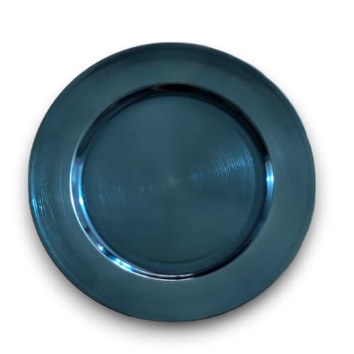 Generico Aurora Store Sottopiatti Blu Mare SPAZZOLATO Bordo LISCIO, uso Decorativo in plastica Rigida Bordo liscio, Tondo 33 cm, Natale cenone sotto Piatto Natalizio Cenone Capodanno Aperitivo (12)