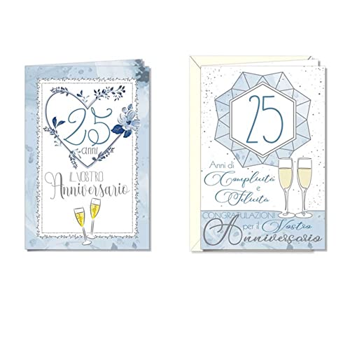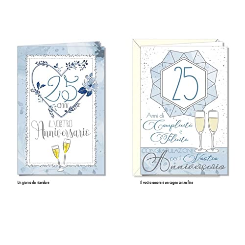Generico 1 PZ Biglietto Auguri Anniversario 25 Anni Nozze d'Argento Blu e Argento