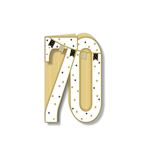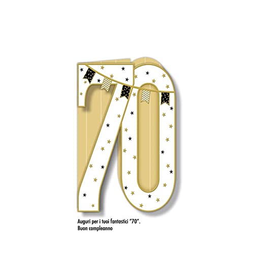 Generico Biglietto Auguri Compleanno 70 Anni Sagomato Bianco Oro e rilievi