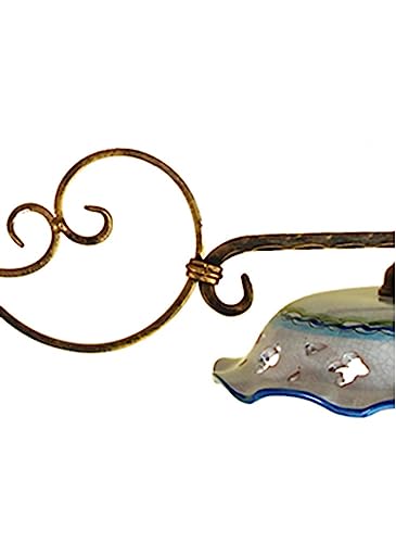 Generico BILANCIERE RUSTICO IN CERAMICA E FERRO BATTUTO 2 LUCI ETRUSCA PER CUCINA SOGGIORNO