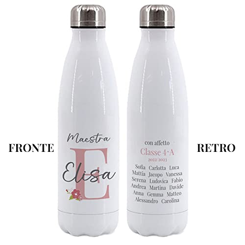 Generico Borraccia per la maestra | Regalo personalizzato con monogram nome e classe | Bottiglia termica in Acciaio Inox