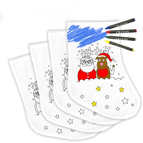 Generico Set 4 Calze Natalizie da Colorare - Calza Befana con Colori a Cera per Bambini