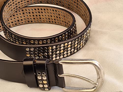 Generico Cintura borchie Vera Pelle 100% - Cintura stile vintage alla Moda Cintura sportiva da Donna - vintage con borchie a sfera multicolore, accorciabile Cintura Rockstar con Borchie (115)