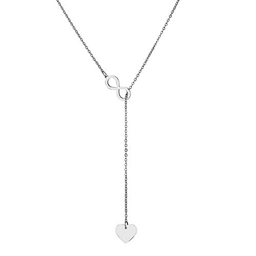 Generico Collana Infinito Donna Catenina Stratificata con cuore pendente, girocollo, Colore Argento
