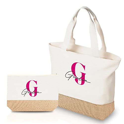 Generico Combo Borsa e Pochette Donna Coordinate da Mare Porta Trucchi Oggetti Astuccio Chiusura Zip Multiuso Viaggio