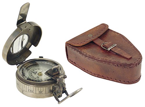 Generico 125 Compasso Brunton con custodia pelle 7,5 cm ottone anticato