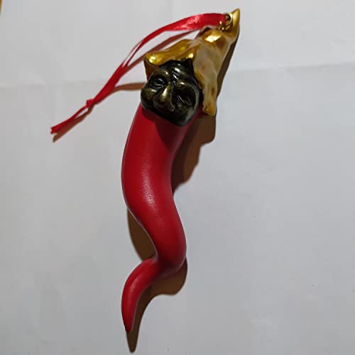 Generico CORNO CORNETTO ROSSO PORTAFORTUNA PULCINELLA CLASSICO NAPOLETANO CAPPELLO ORO 10 Cm. Artigianale Dipinto a Mano