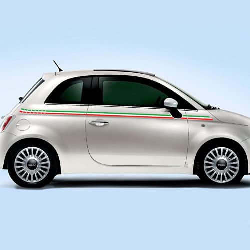 Generico Kit Fasce Adesive Ricambio Compatibile con Fiat. 500, Laterali Tricolori Strisce Bonnet Decal Tuning LOLLOMOTO