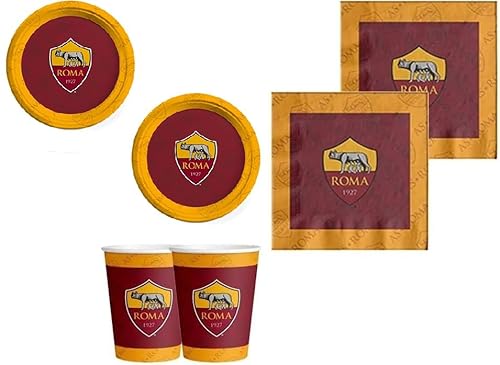 Generico Kit Festa 8 Persone Coordinato Tavola Addobbi Party Set Compleanno con 8 Piatti 18cm, 8 Bicchieri e tovaglioli (Set 8 Persone, Roma Calcio)