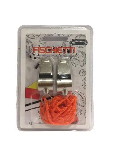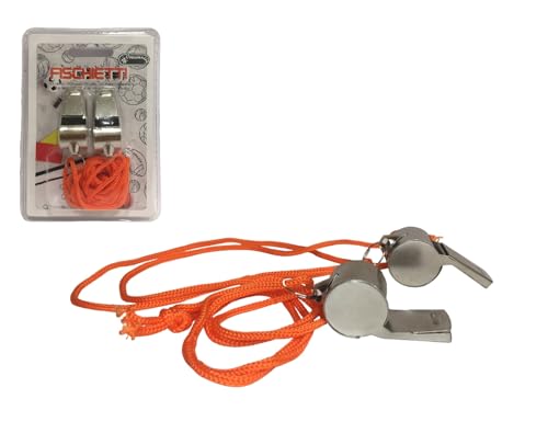 Generico Fischietto in Acciaio Inox Confezone 2 Pezzi,Metallo Fischietto Arbitro con Cordino,2 Fischietti Sportivi Inossidabili,Arbitri,Allenatori,Bagnini,Calcio,Pallacanestro,Manifestazioni,Coach