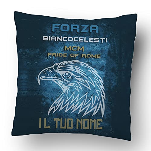 Generico Forza Biancocelesti Cuscino Personalizzato con Nome Idea Regalo Squadra del Cuore Tifosi MCM Papà Nonno Natale Compleanno Calcio Pallone Decorazioni Casa Divano Letto Retro Colorato
