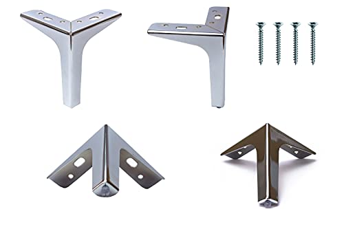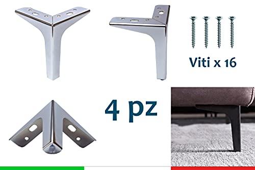 Generico 4 PZ Gambe per Mobili e Divani in Metallo Piedini di Supporto per Armadio, Tavolino, Poltrona - Piedi Cromati - Modello Siena (Metallo, h.10,5 cm)