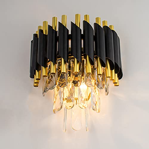 Generico Lampada da parete in cristallo Applique da parete nera Lampada da comodino moderna Lampada da comodino Luci notturne per camera da letto Bagno Soggiorno Corridoio, E14x2