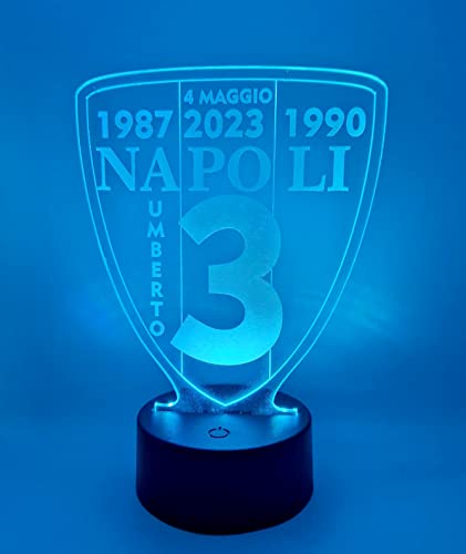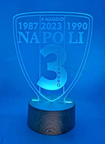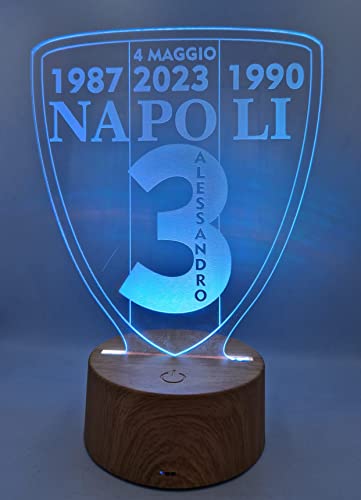 Generico Lampada in Plexiglass con Base Nera Disegno Scudetto del Napoli Calcio data 04 Maggio 2023 e Nome Personalizzato Decor Night Light LED Luce Camera 7 Colori