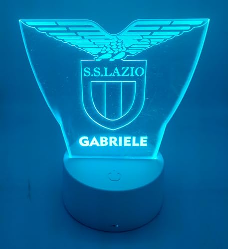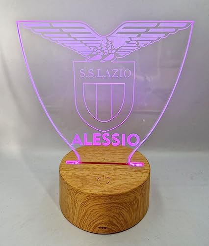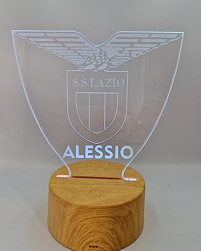 Generico Lampada in Plexiglass con Base Nera Logo LazioCalcio e Nome Personalizzato Decor Night Light LED Luce Camera 7 Colori