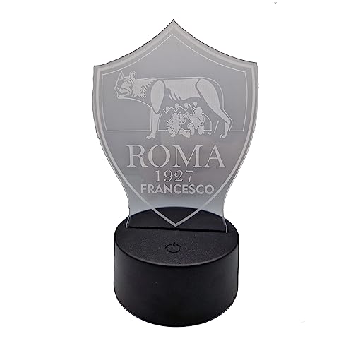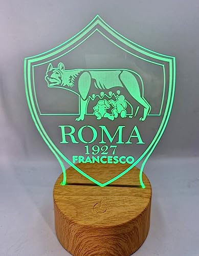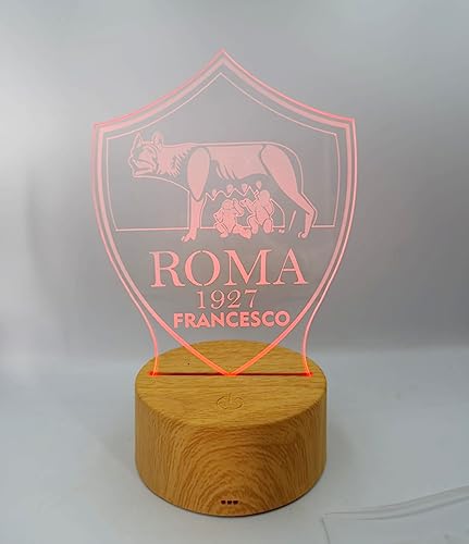 Generico Lampada in Plexiglass con Base Nera Logo Roma Calcio e Nome Personalizzato Decor Night Light LED Luce Camera 7 Colori