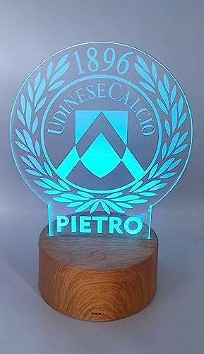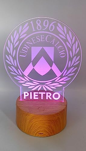 Generico Lampada in Plexiglass con Base Nera Logo Udinese Calcio e Nome Personalizzato Decor Night Light LED Luce Camera 7 Colori