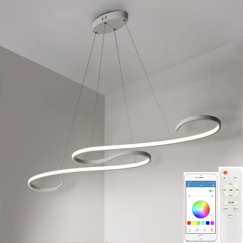 Generico Lampadario Led a Sospensione Soffitto Design Moderno Luce Calda Fredda Dimmerabile Plafoniera Con Telecomando e App Cellulare Lampada Soggiorno Salotto Cucina Camera Da Letto Ufficio 110 Cm