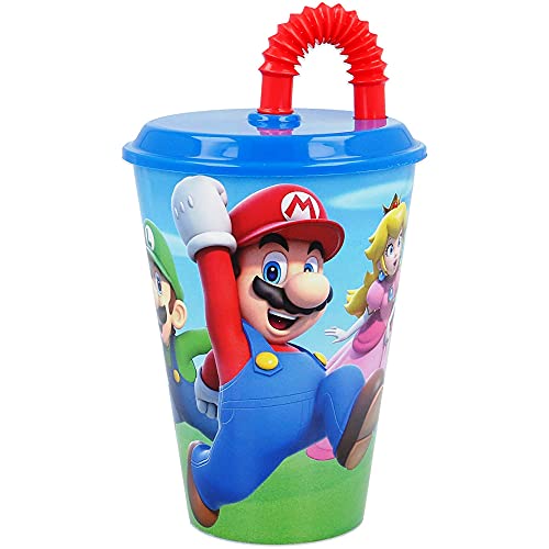 Generico Set Mario Videogioco Super Idraulico Bicchiere con Cannuccia + PORTAMERENDA BPA Free - MARIO21/2PZ
