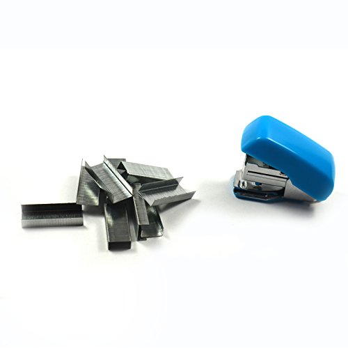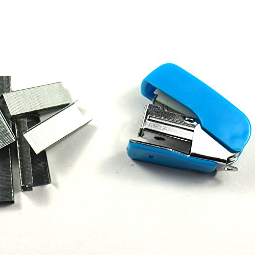 Generico Mini Cucitrice Blu Turchese 45/25 mm + Confezione di graffette Masse - Scrivania Forniture scolastiche - Mini Cucitrice Tascabile miniatura piccola