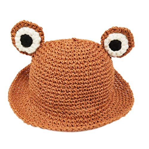 Generico moregirl Berretto da Sole in Tessuto di Paglia per Bambini Bambino Cappello da Pescatore con Protezione Solare a Tesa Larga Rana del Fumetto