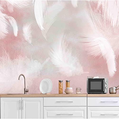Generico Art Murals Carta da parati in tessuto non tessute, Piume rosa, 270 х 180 cm, decorazione romantica della casa, bella carta da parati per camera dei bambini, camera da letto