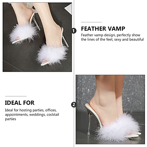 Generico Pantofole Tacco per le Donne Delle Donne Fluffy Piuma Sandalo A Punta Pantofola Stiletto Abito Da Sposa di Alta Scarpe Tacco