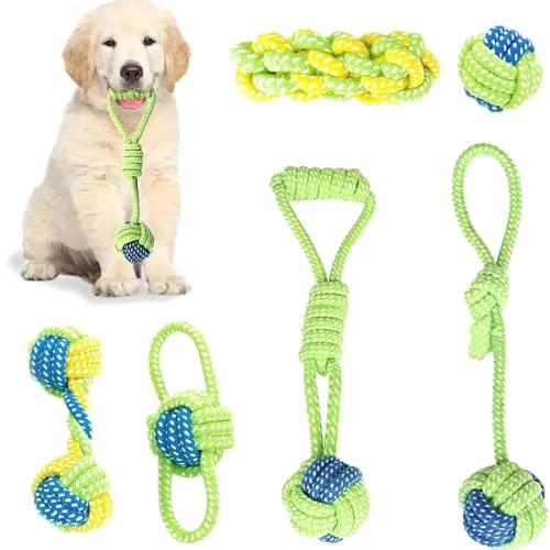 Generico Set 7 PEZZI Giocattolo in Corda Per Cani Gatti Animali Domestici Gioco Giochi Indistruttibili Cotone Masticare Tirare Addestramento Varie Misure Interattivo Resistente Cucciolo Lavabile