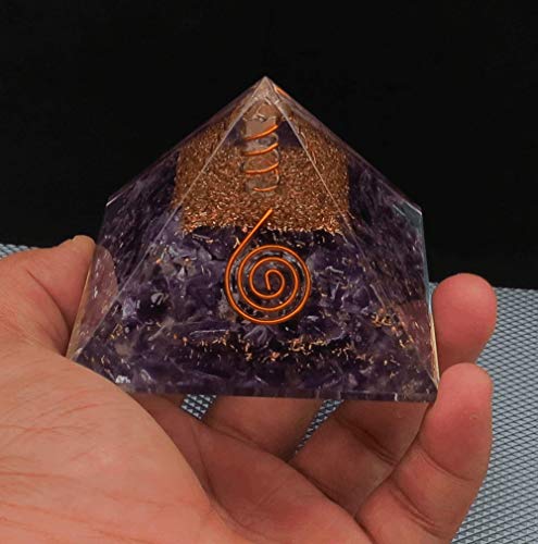 Generico Piramide di orgonite Ametista con Potente Bobina di Rame curativo per Protezione EMF e Decorazioni/Regali per l'home Office (Piramide di Cristallo di organite, 3"Pollici)