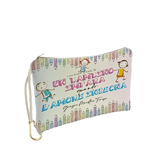 Generico Pochette Donna Bianca in Tela Personalizzata con testo '' QUANDO L'AMORE INSEGNA CON NOME E CLASSE '' per Maestra scuola Elementare Infanzia Asilo, Idea Regalo di classe fine anno scolastico