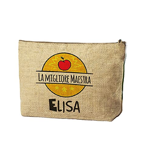 Generico Pochette Maestra Personalizzabile Idea Regalo Fine Anno Natale Pasqua porta oggetti astuccio In poliestere e Carta color juta Insegnati Asilo Nido MATERNA Elementari con nome Maestra 6
